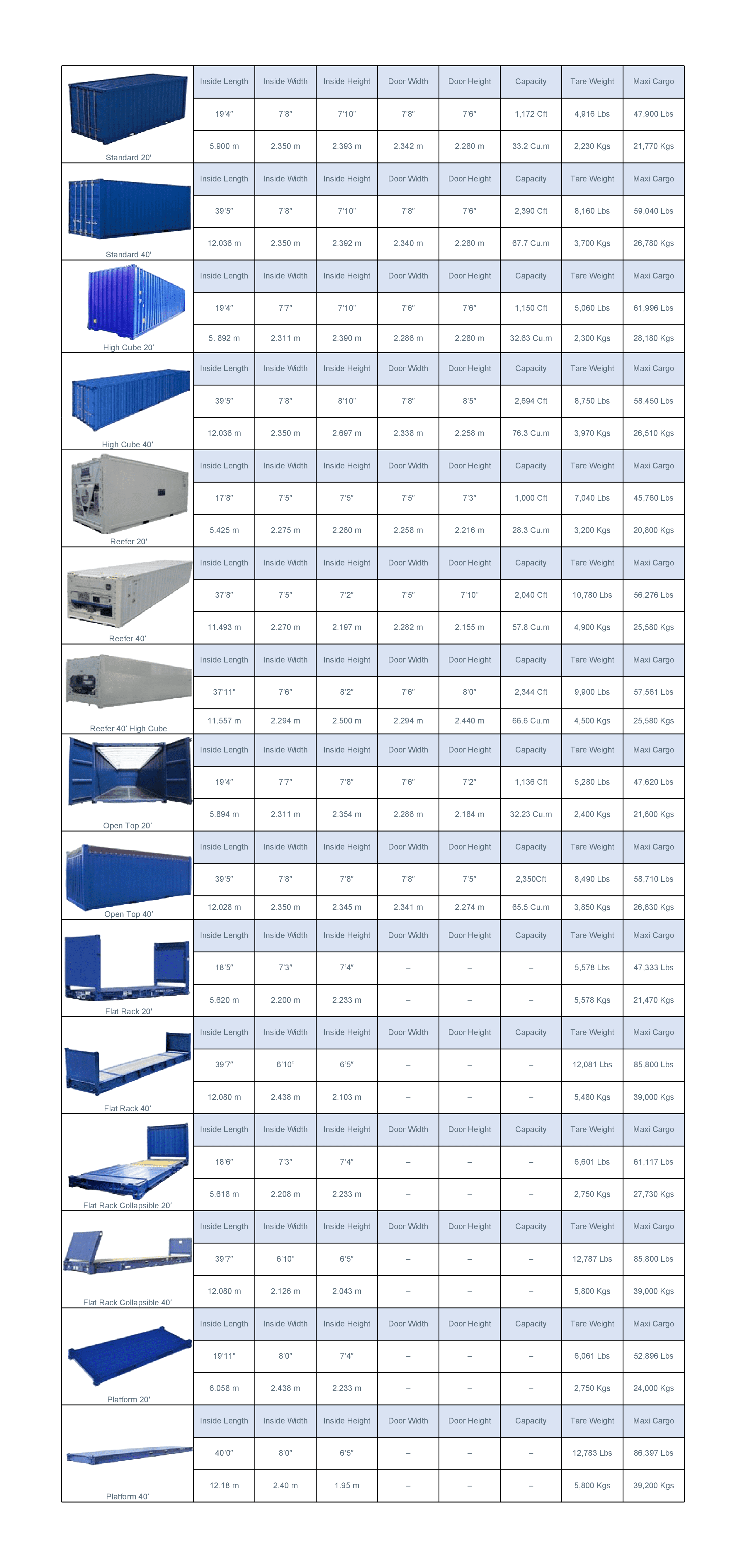 Container DIMENSIONS